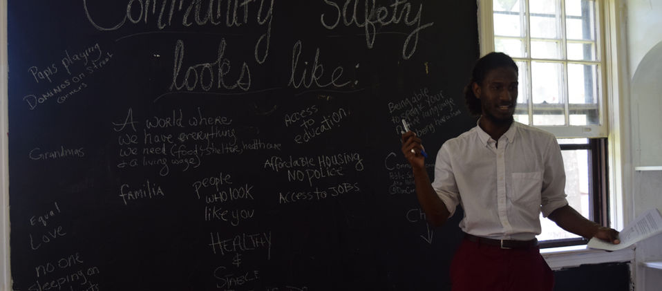Organizers Darian Agostini, Mariame Kaba (@prisonculture) and Reign Rolon host an immersive experience focused on imagining community safety and transformative justice. Participants discuss how the prison industrial complex devastates our communities and why we need to build a world without prisons, policing and surveillance.